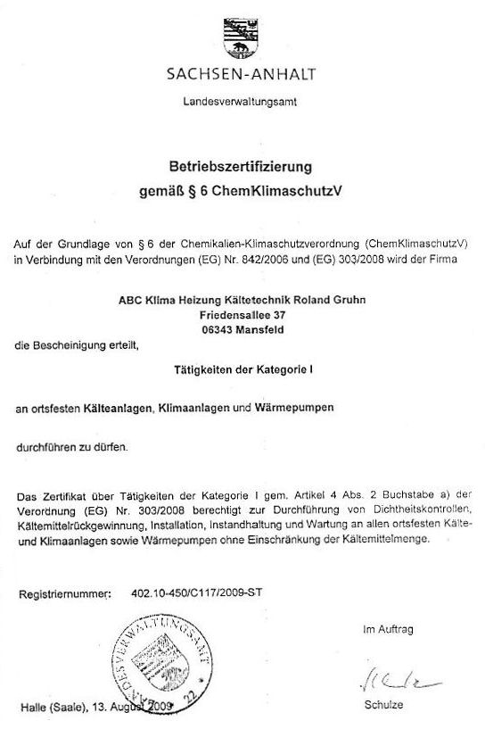 Betriebszertifizierung gemäß § 6 ChemKlimaschutzV